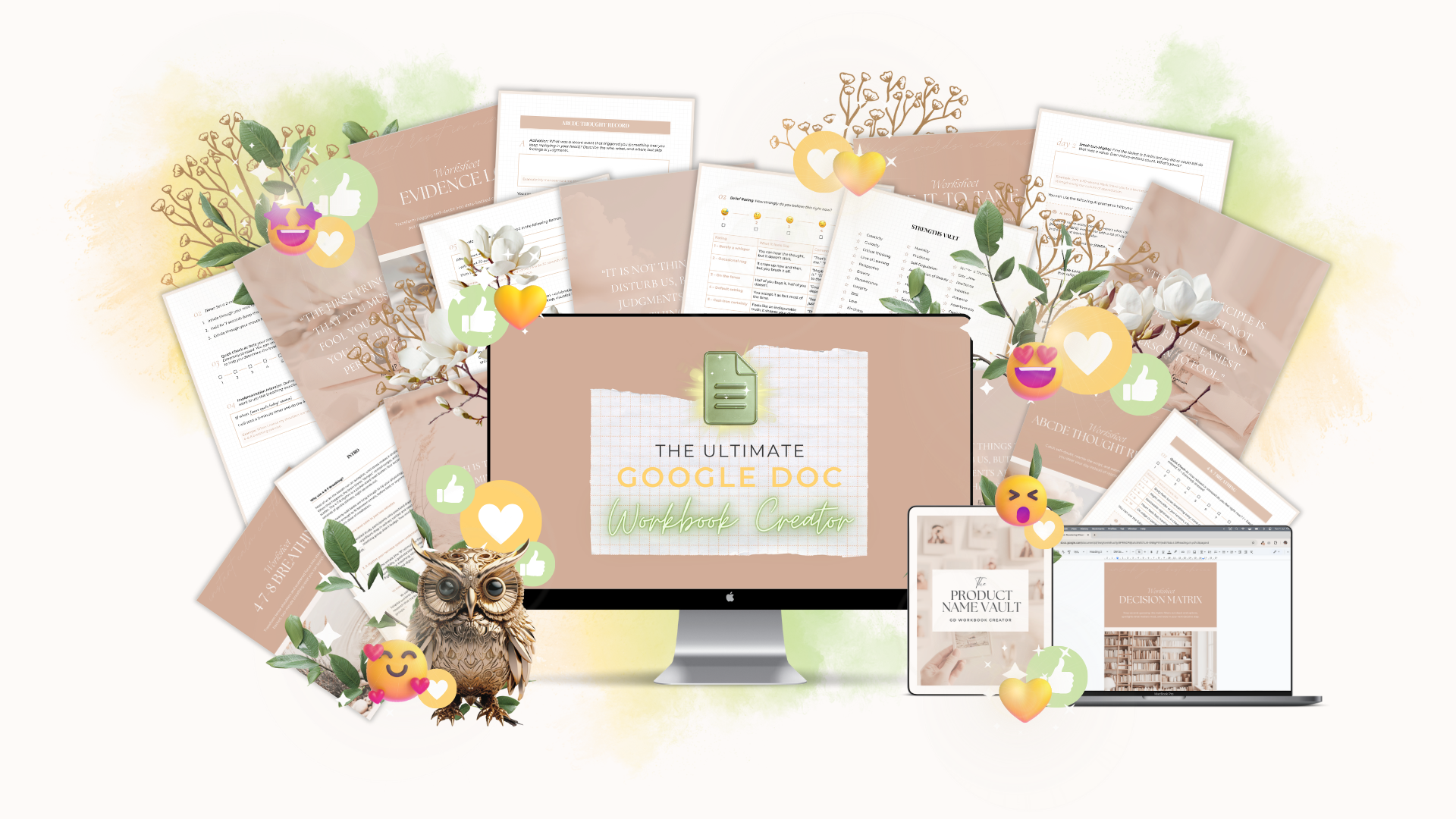 Get 30 beautiful Google Doc worksheets with done-for-you content you can mix and match to create your own premium and user-friendly workbooks.